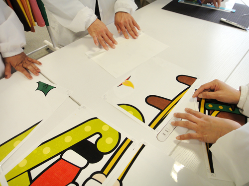 境目を合わせて繋ぎ合わせて行きます。イラストがずれないように慎重に繋げます。