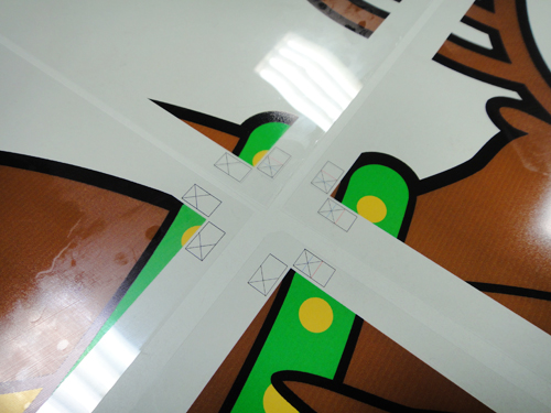 プリンタドライバの設定では、合わせやすいように印を付けて印刷する事ができます。