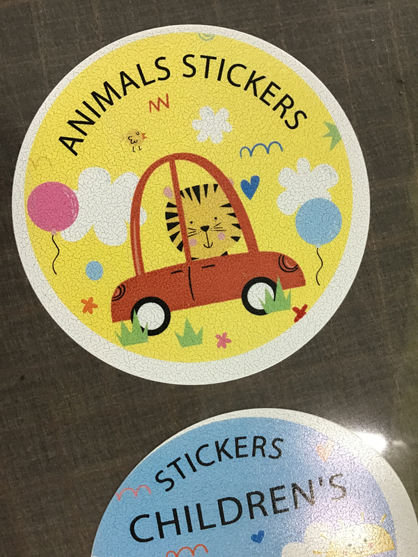白インクがひび割れているので、その上に印刷したカラーもひび割れの上に乗った感じになっています。